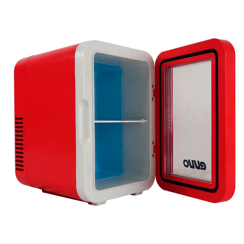 La Mini Nevera Evvo DS-1006-R es una solución compacta de 6 litros, perfecta para espacios reducidos. Su acabado en rojo aporta un toque de color, mientras su diseño ligero facilita el traslado entre coche, dormitorio o despacho. Con capacidad para bebidas y snacks, funciona como minibar personal gracias a su función de enfriamiento y calentamiento en un solo equipo.