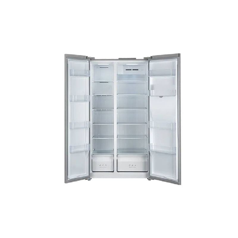 Refrigeradora side by side TCL C575SBIM con 575 litros de capacidad total en dos puertas y acabado cromado. Su sistema No Frost evita la formación de hielo y facilita la limpieza diaria. Con tecnología inverter, funciona de forma eficiente y silenciosa, mientras que el dispensador de agua y el ice maker proporcionan agua fría y hielo al instante. El interior iluminado y el panel de control con display digital permiten verificar ajustes con precisión. Sus medidas son 193 cm de alto, 96.7 cm de ancho y 73.7 cm de profundidad. Sus funciones destacadas incluyen T-Fresh para reducción de bacterias, Power Cool y Power Freeze para enfriar o congelar rápido. El color cromado aporta un toque moderno y versátil a la cocina, y el diseño de dos puertas facilita el acceso a cada zona de almacenamiento. Todo se gestiona a través del panel digital para ajustar temperaturas, zonas y funciones. En conjunto, es una solución práctica para conservar alimentos, bebidas y hielo de forma eficiente y con rendimiento fiable para uso diario.